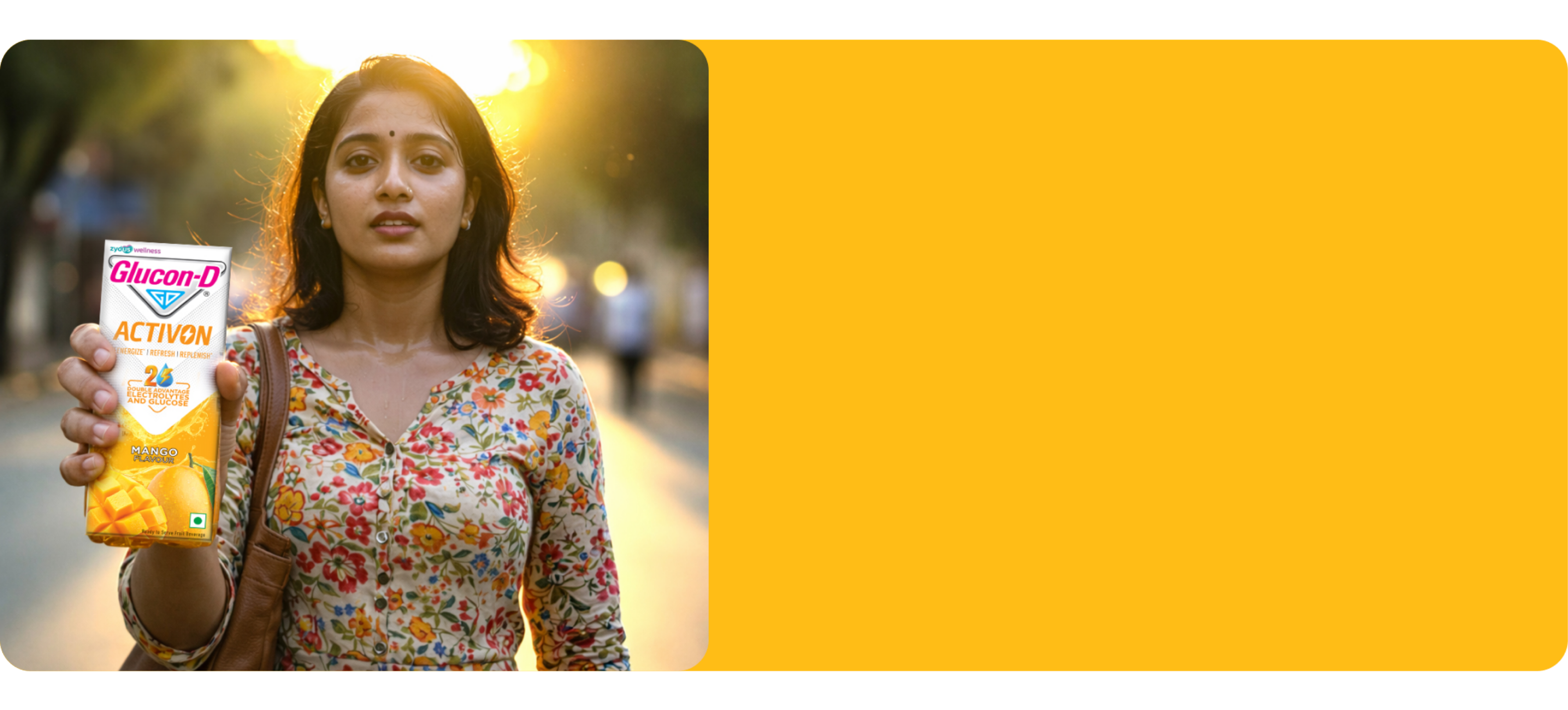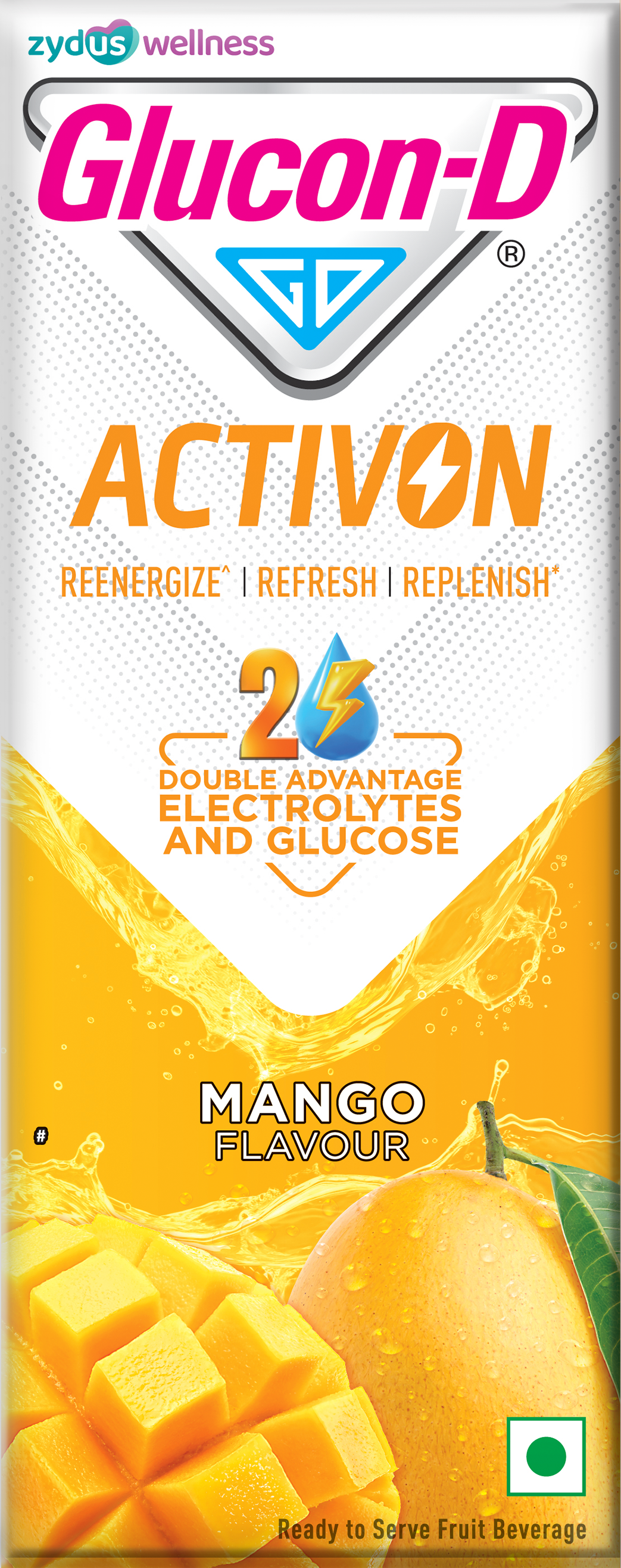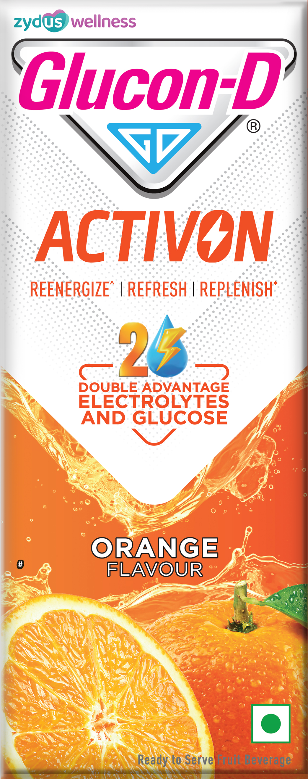Glucon-D ActivON is formulated for these moments. With its double advantage of glucose and electrolytes, it helps provide quick energy^ while replenishing what’s lost through sweat, all in a convenient, ready-to-drink tetra pack for life on the go.