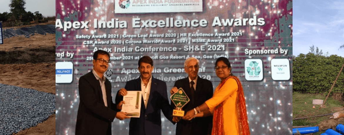 Winning the award amongst 8500 unit applications, the award was received by Ganjam Environmental Team Mr. Ashok Singh, & Dr. Suchismita Pattnaik at the APEX India GreenLeaf Awards from Mr Manoj Tiwari (MP and Actor) & Mr. P.K. Saighal (Defence expert).
