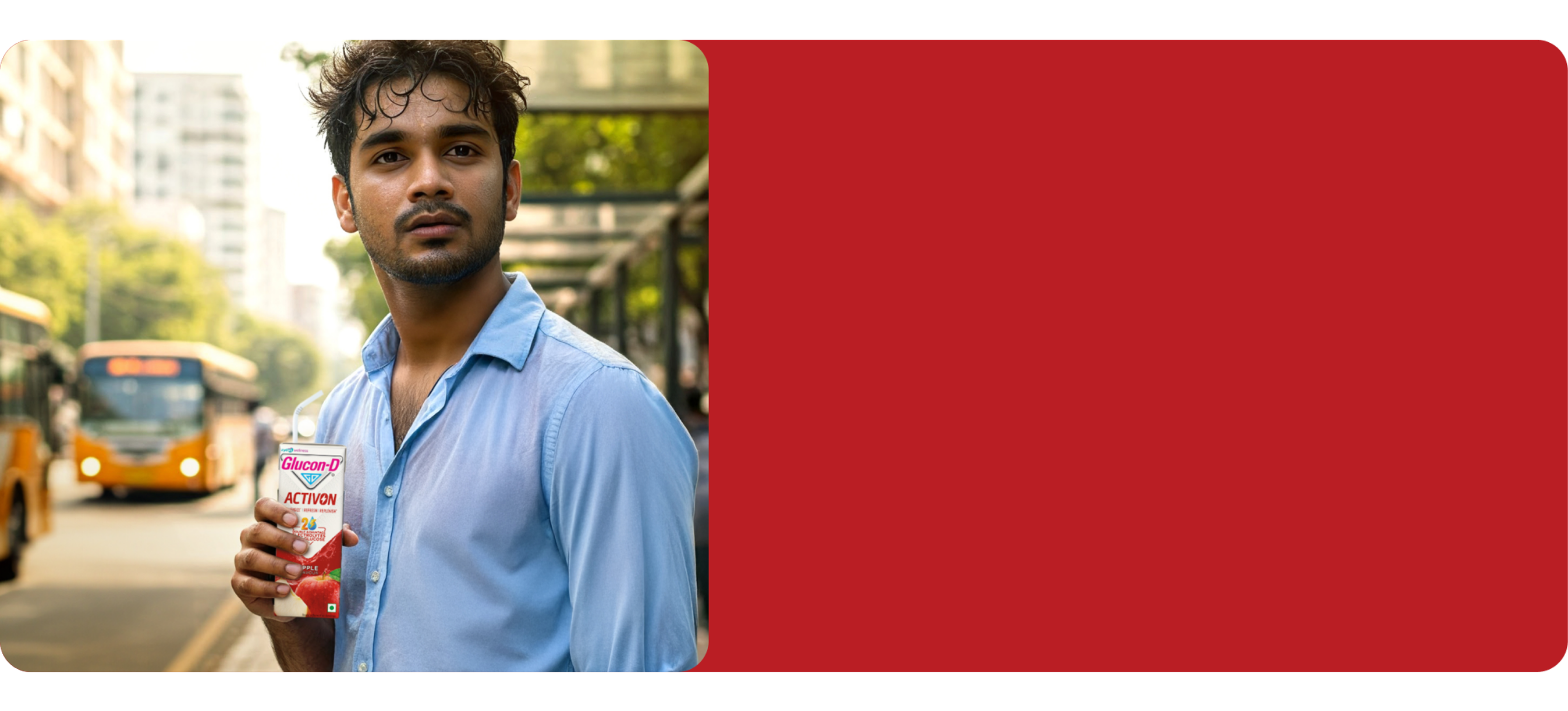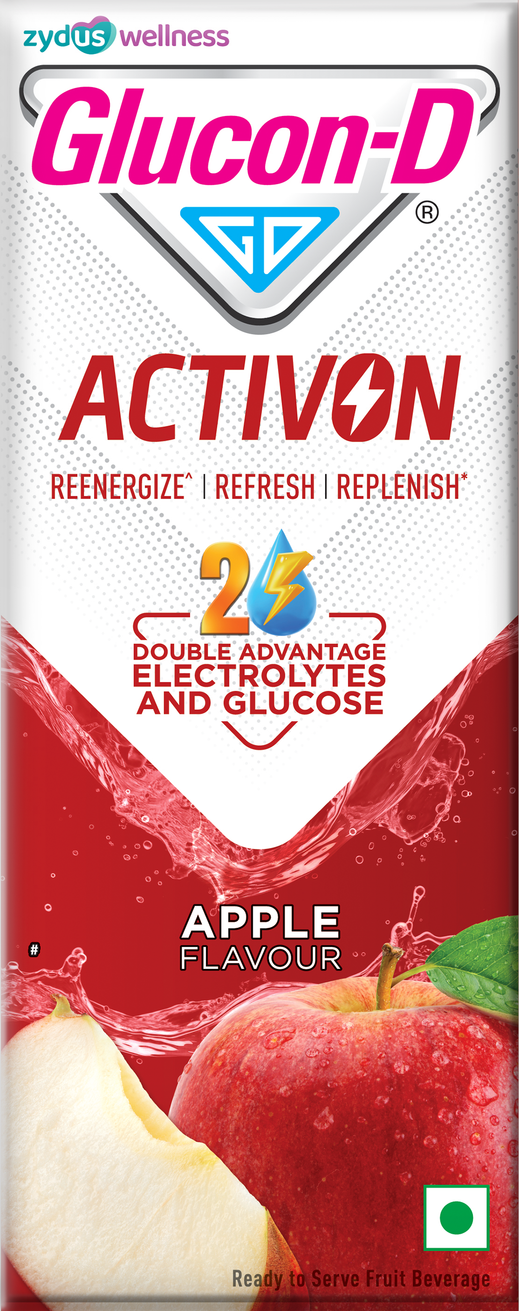 Glucon-D ActivON is formulated for these moments. With its double advantage of glucose and electrolytes, it helps provide quick energy^ while replenishing what’s lost through sweat, all in a convenient, ready-to-drink tetra pack for life on the go.
